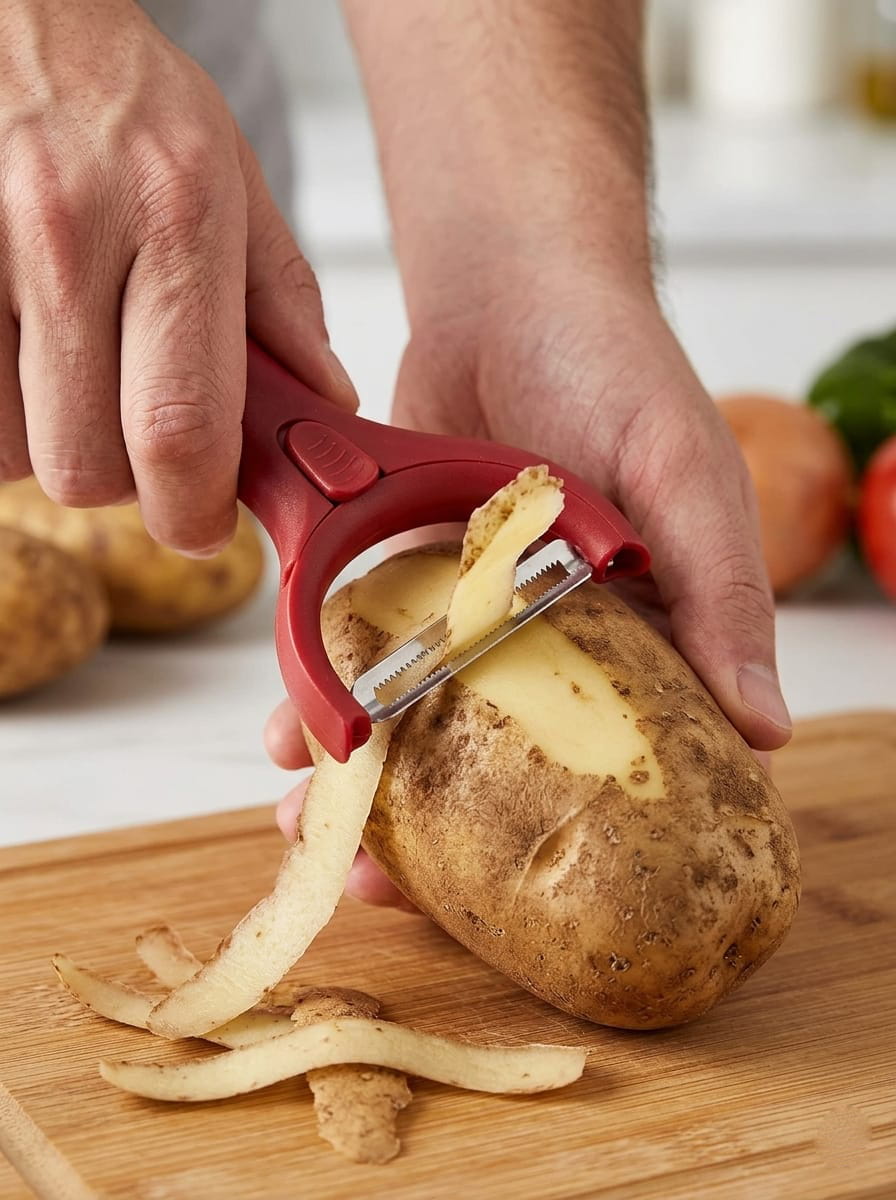 Peel smarter and faster with precision! The movable head Y-shaped peeler is designed to deliver effortless peeling with its ultra-sharp stainless steel swivel blade that adapts to any fruit or vegetable shape. Whether you prefer vertical or horizontal peeling, this 2-in-1 tool gives you full control and comfort. Its ergonomic non-slip handle ensures a secure grip even with wet hands, making it perfect for daily kitchen use. Durable, rust-resistant, and highly efficient, this peeler is a must-have tool for every modern kitchen. (shop now from Homedash in Lebanon)
