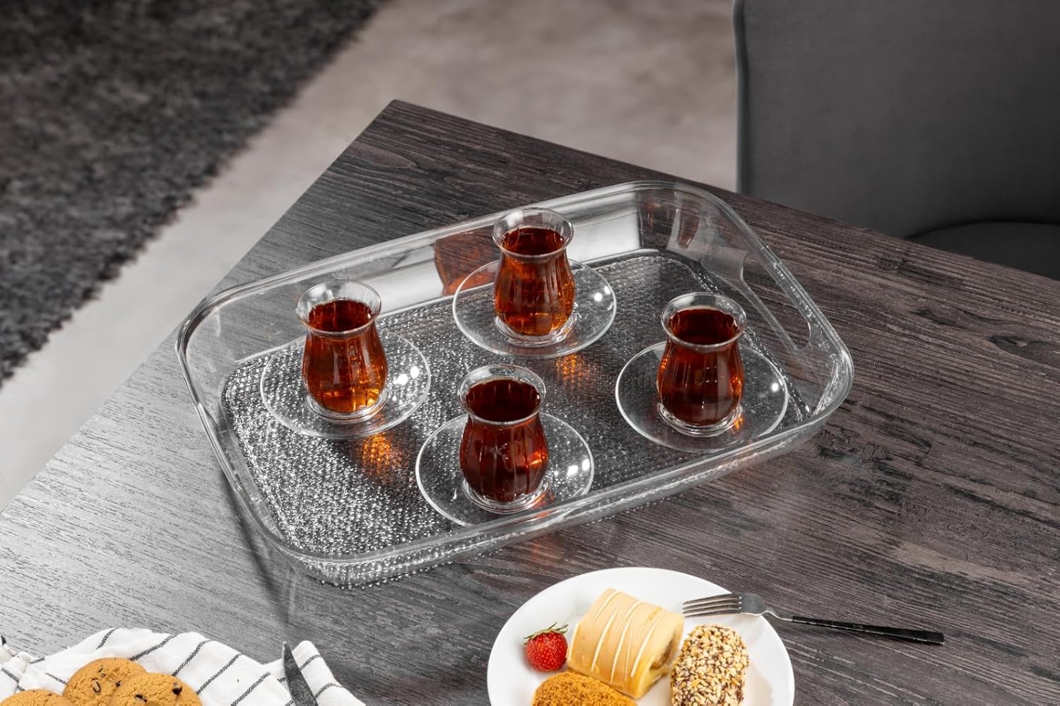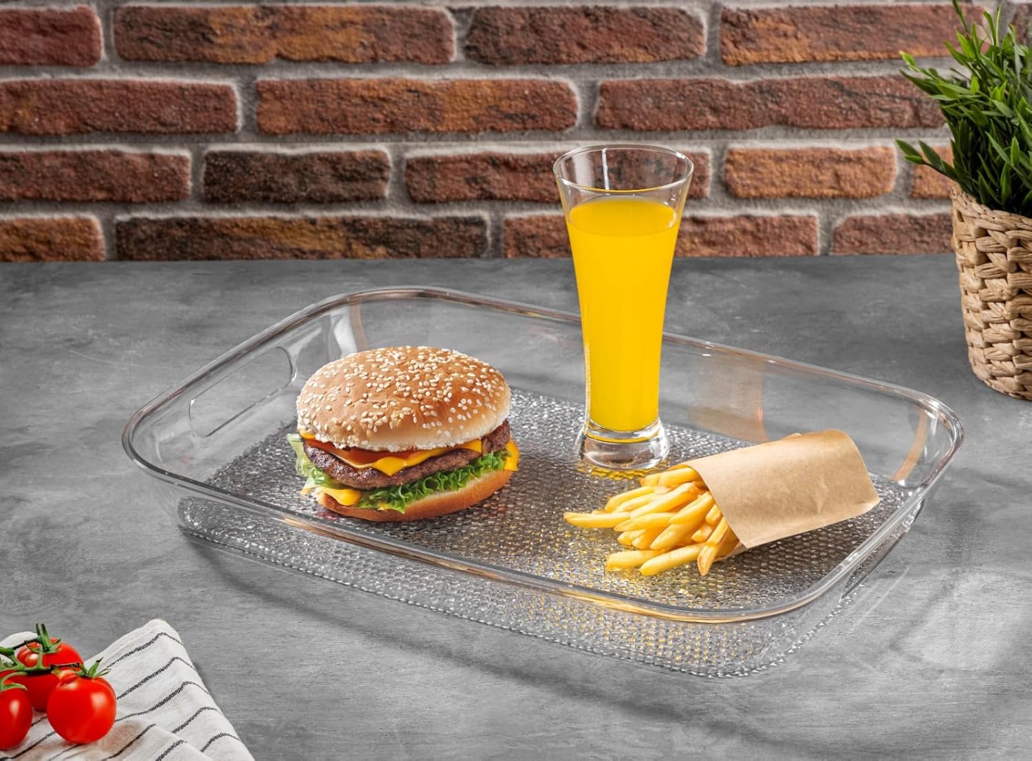 Elevate your serving experience with style and practicality! This clear serving tray is designed to bring elegance and functionality to your kitchen, dining table, or serving setup. Made from high-quality plastic, it offers excellent durability while maintaining a sleek transparent look that enhances the presentation of your food and drinks. The textured dotted base adds a decorative touch, making every serving more appealing. With its deep design and built-in handles, this tray ensures safe and spill-free carrying whether you’re serving beverages, snacks, or desserts. Perfect for everyday use or entertaining guests, this versatile tray is a must-have for every home. Shop now from Homedash in Lebanon and upgrade your serving essentials.