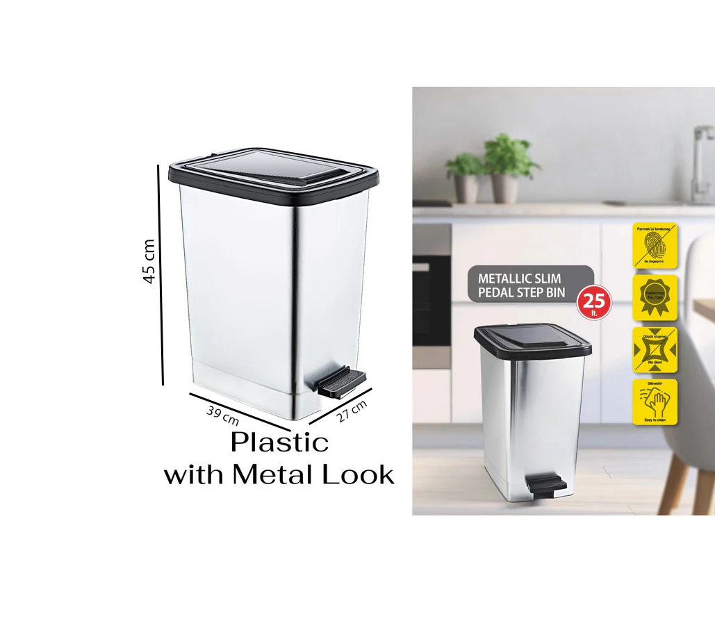 SLIM 25 LITRES TRASH CAN WITH PEDAL – HANDS-FREE WASTEBIN FOR HOME & OFFICE