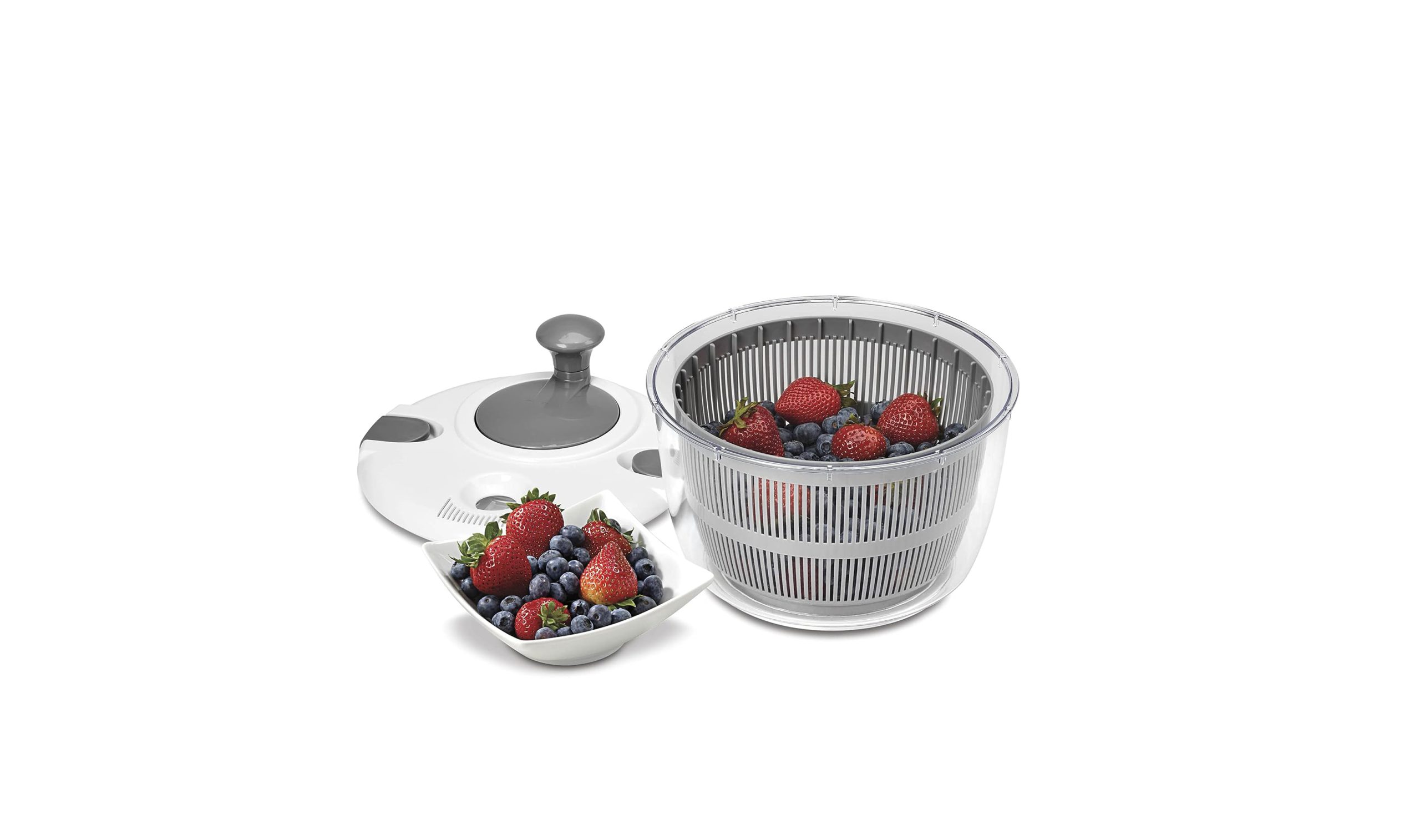 salad spinner bowl with crank handle and locking lid used for washing and drying vegetables and fruits in kitchen – Homedash Lebanon