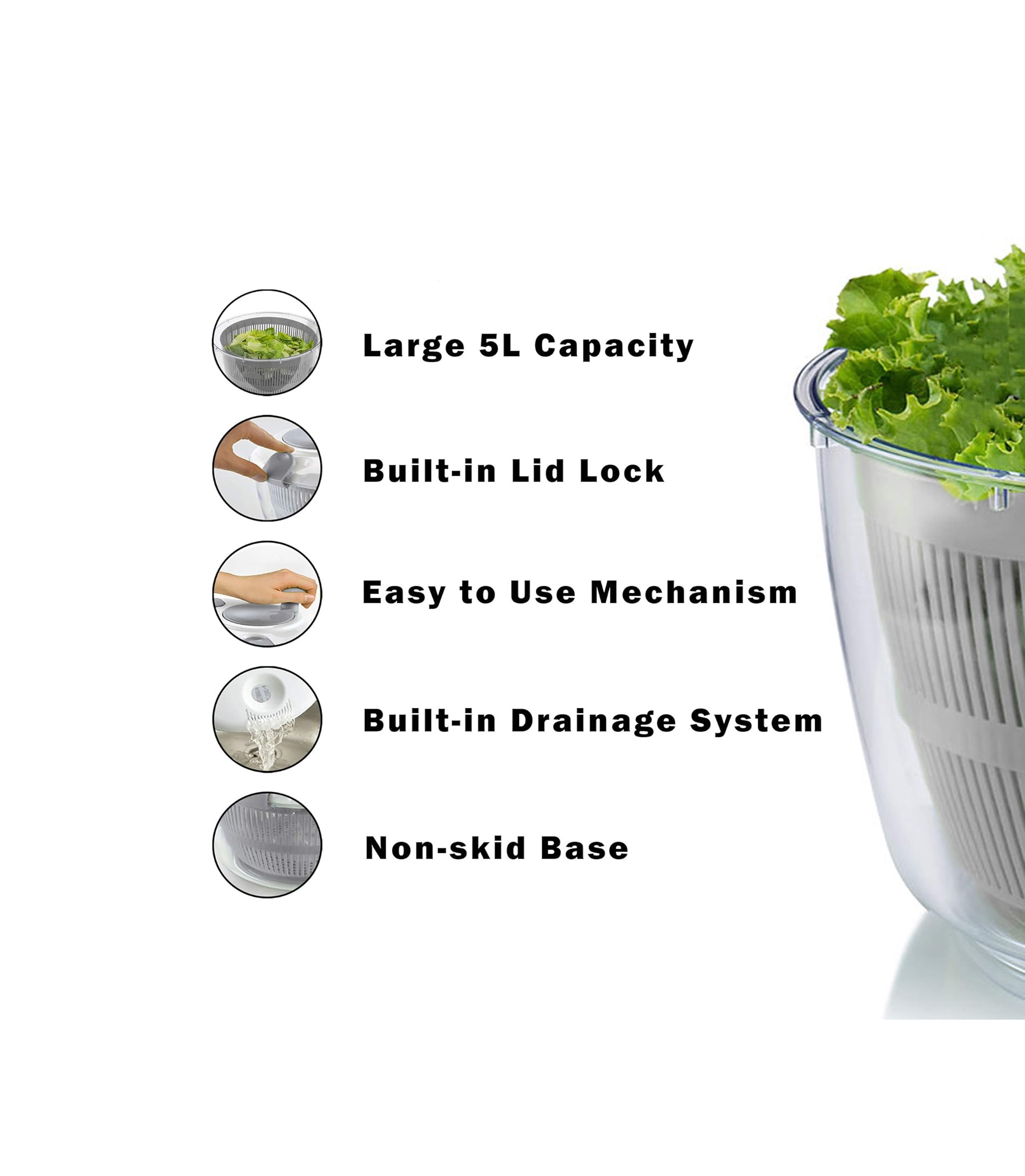 •Large Capacity: 5 Liters bowl ideal for big salad batches