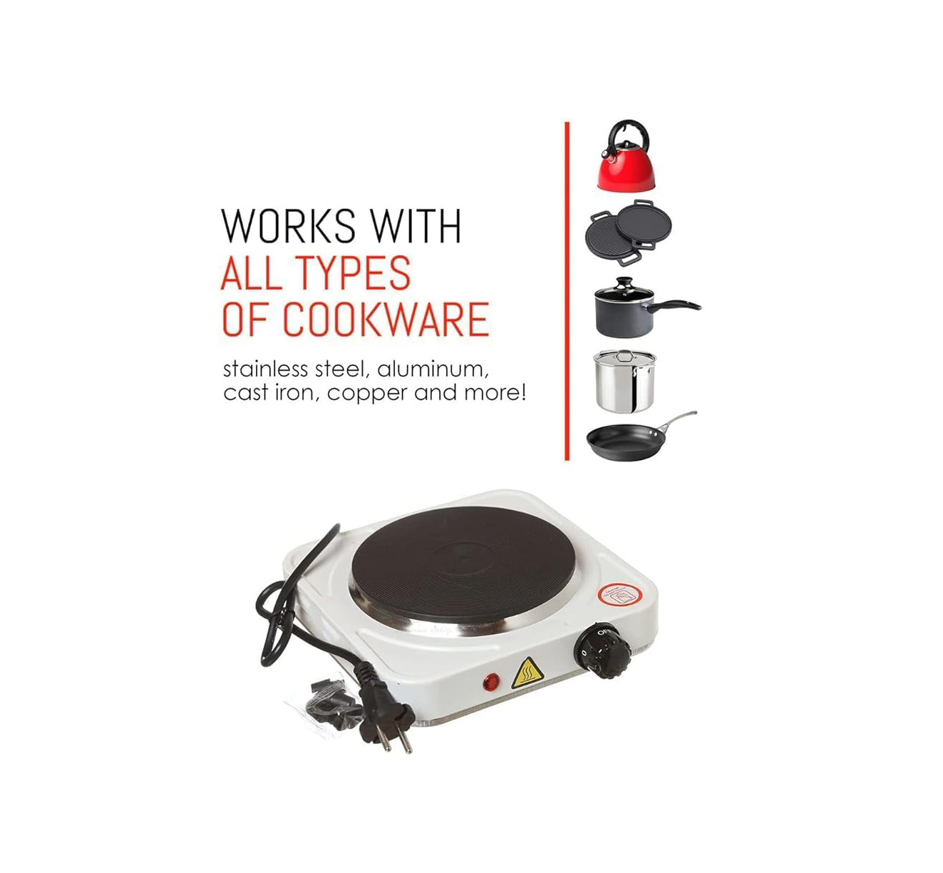 Cook anywhere with convenience and power. This electric portable hot plate hob is designed to bring reliable cooking performance to any space. Featuring a durable cast iron heating plate and a powerful 1500W output, it quickly heats up and maintains consistent temperatures for efficient cooking. Its compact size makes it perfect for small kitchens, dorm rooms, offices, or as an extra burner during busy cooking sessions. The adjustable heat settings allow you to prepare a wide variety of meals with ease while the sturdy design ensures safety and stability.