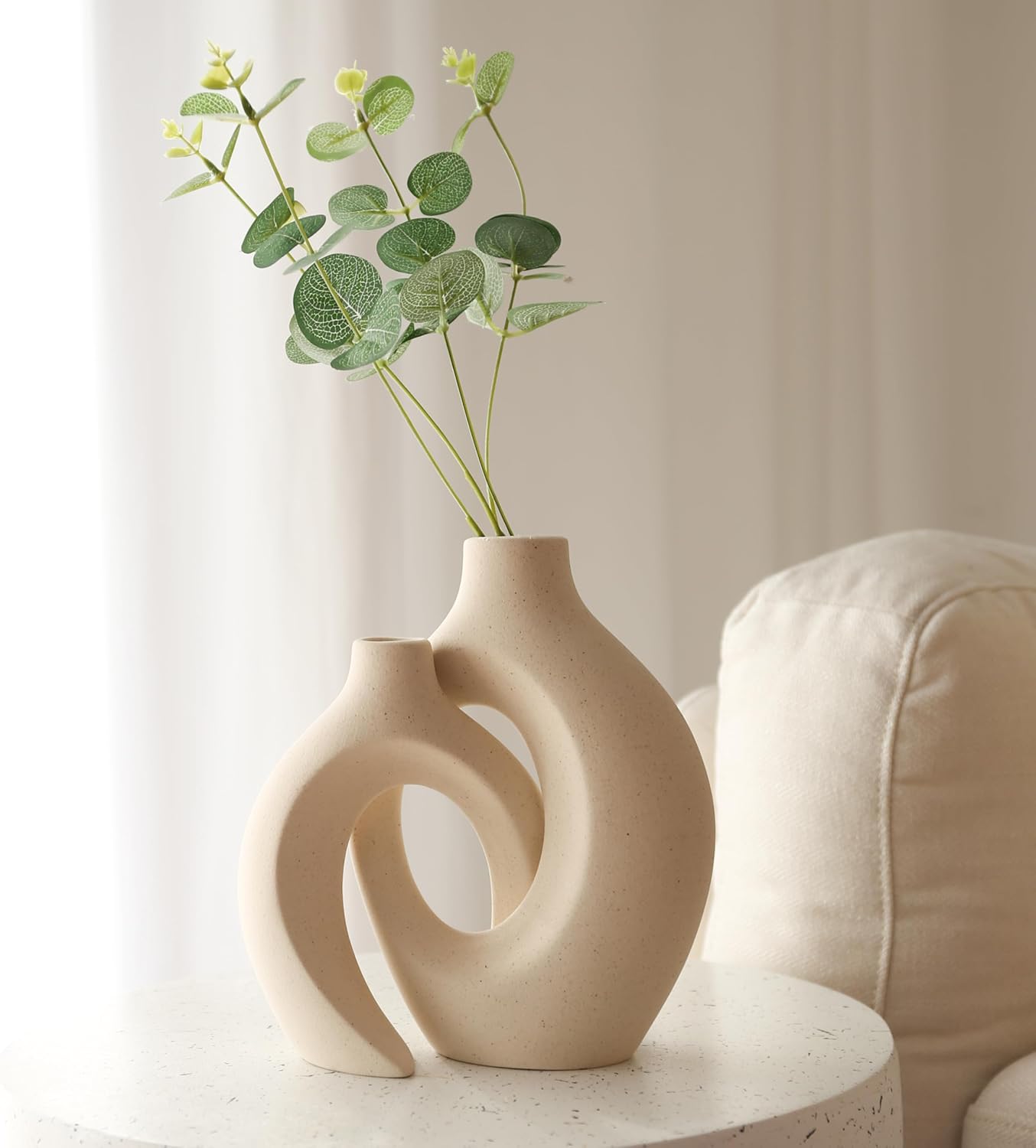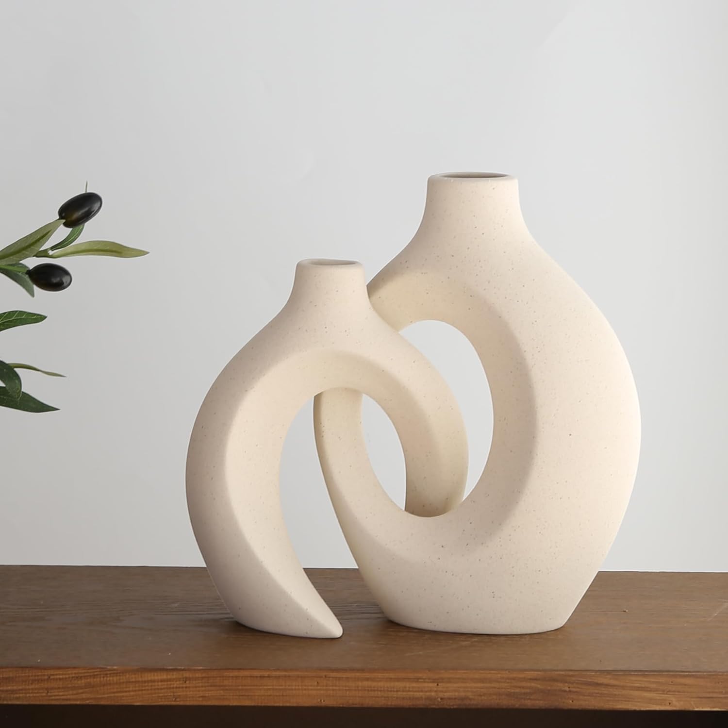 SET OF 2 CERAMIC VASES – NORDIC MODERN BOHO DECORATIVE FLOWER VASES FOR HOME DÉCOR