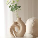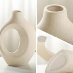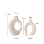 •Set includes 2 uniquely shaped ceramic vases with artistic circular design
