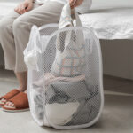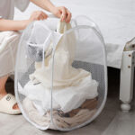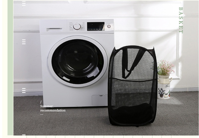 LAUNDRY COLLAPSIBLE MESH POP UP WITH WIDE OPENING AND SIDE POCKET – BREATHABLE FOLDABLE SPACE-SAVING CLOTHES BASKET