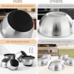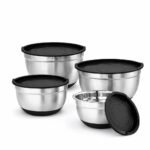 STAINLESS STEEL MIXING BOWLS – NON-SLIP SILICONE BASE WITH LIDS SET OF 4 – AIRTIGHT SILICONE LIDS, LARGE KITCHEN PREP BOWLS (BLACK)