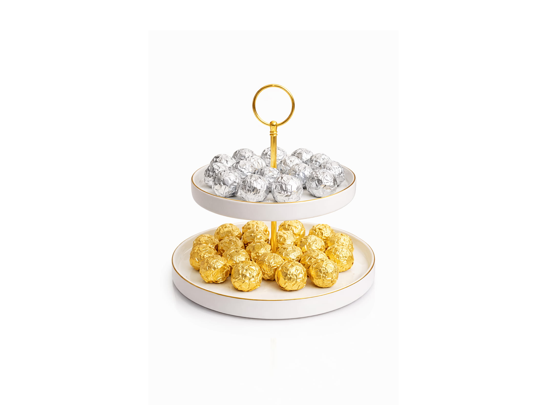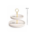 DESSERT STAND DUAL-TIER CERAMIC WITH GOLD ACCENTS