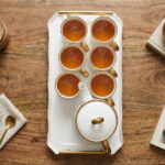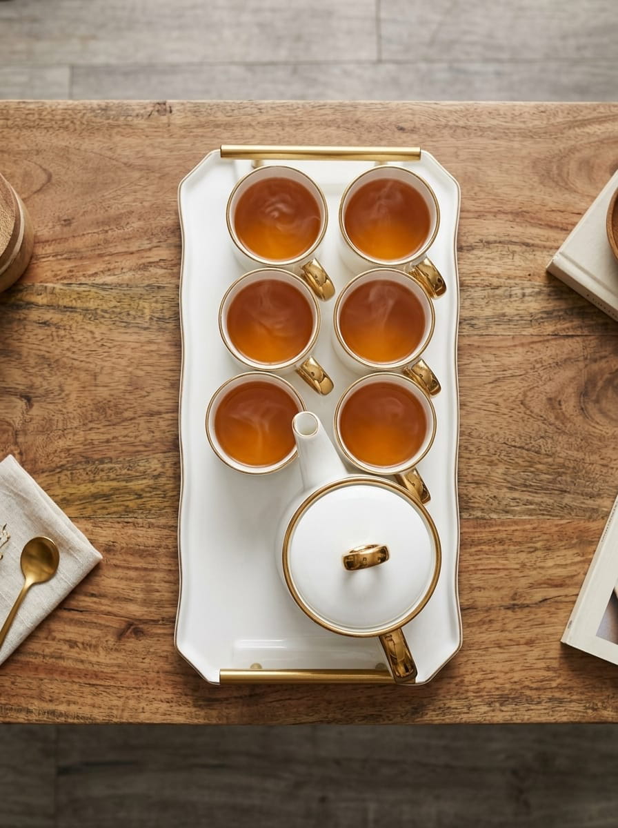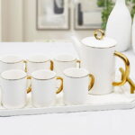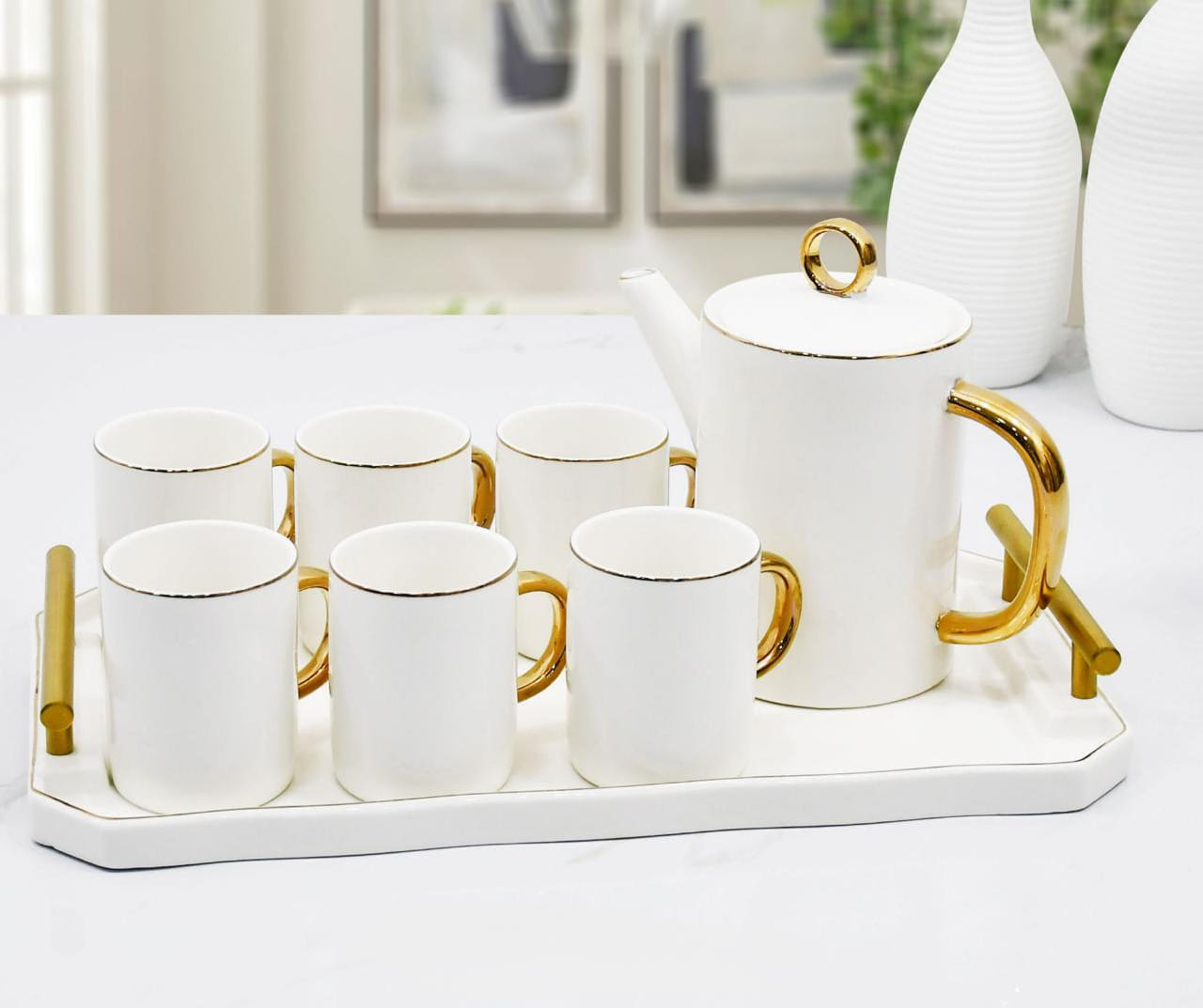 TEA SET WITH TRAY 8PCS WHITE GOLD LUXURY CERAMIC