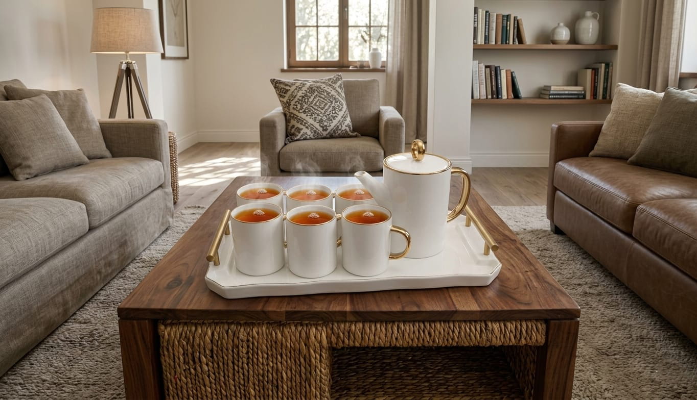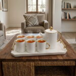 Elevate your tea experience with timeless elegance. This luxurious 8-piece ceramic tea set combines modern minimalism with refined gold accents, creating a stunning centerpiece for any table. Designed for both everyday comfort and special occasions, the smooth white glaze paired with a delicate gold rim delivers a premium feel in every sip. Whether you’re enjoying your morning coffee, serving guests, or gifting a loved one, this set brings sophistication, durability, and style into your home. Shop now from Homedash in Lebanon and upgrade your tea moments.