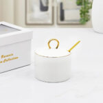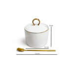 Add a touch of elegance to your table with this luxurious white porcelain sugar bowl. Designed with a minimalist modern style, this piece features a smooth glossy finish, a refined gold rim, and a unique gold ring handle that elevates its premium look. The included gold-toned spoon fits perfectly into the lid notch, combining both beauty and practicality. Ideal for coffee tables, tea setups, or serving guests, this sugar bowl blends functionality with sophisticated design, making it a must-have accessory for stylish homes. Shop now from Homedash in Lebanon and upgrade your serving experience.