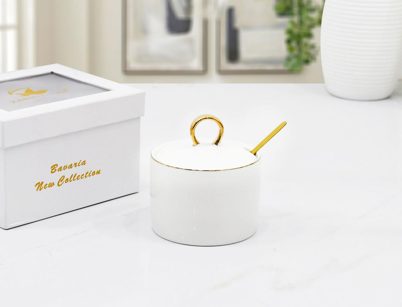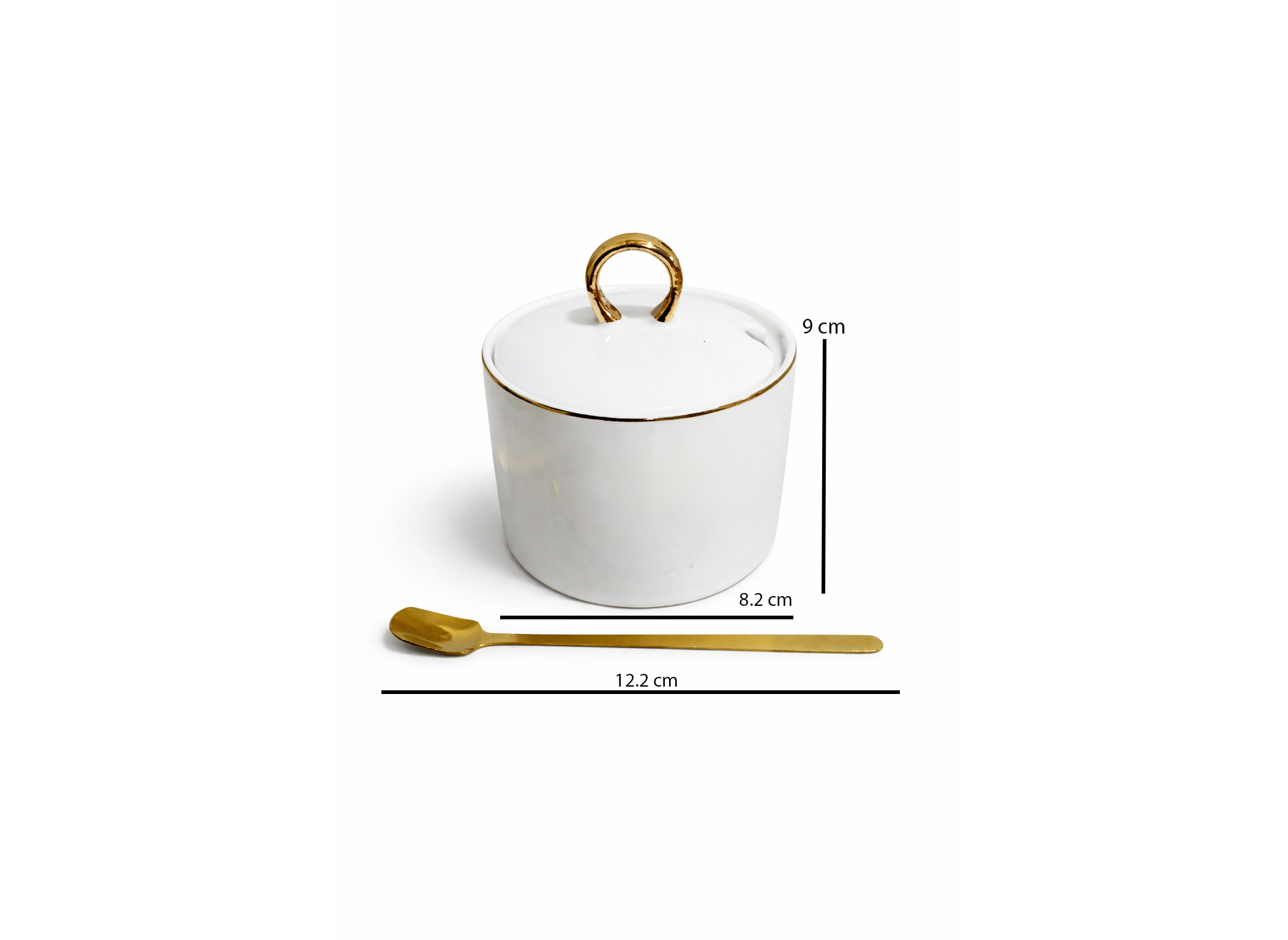 SUGAR BOWL WITH LID AND GOLD SPOON PORCELAIN