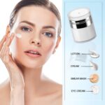 Keep your skincare products fresh and waste-free with this Airless Pump Jar 100ml Lotion Dispenser. Designed with a vacuum pressurized system and no-straw structure, it ensures every drop of your cream or lotion is used while maintaining freshness longer. The double-layer, light-proof wall protects sensitive cosmetics from sunlight and oxidation. Compact, leak-proof, and refillable — it’s perfect for travel or everyday use. Ideal for moisturizers, serums, foundations, and DIY skincare items, this sleek dispenser keeps your beauty routine clean, efficient, and elegant.