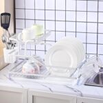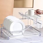 ALUMINUM DISH DRYING RACK WITH DRAINBOARD – MULTIFUNCTIONAL 2-TIER DISH RACK, SPACE-SAVING DESIGN