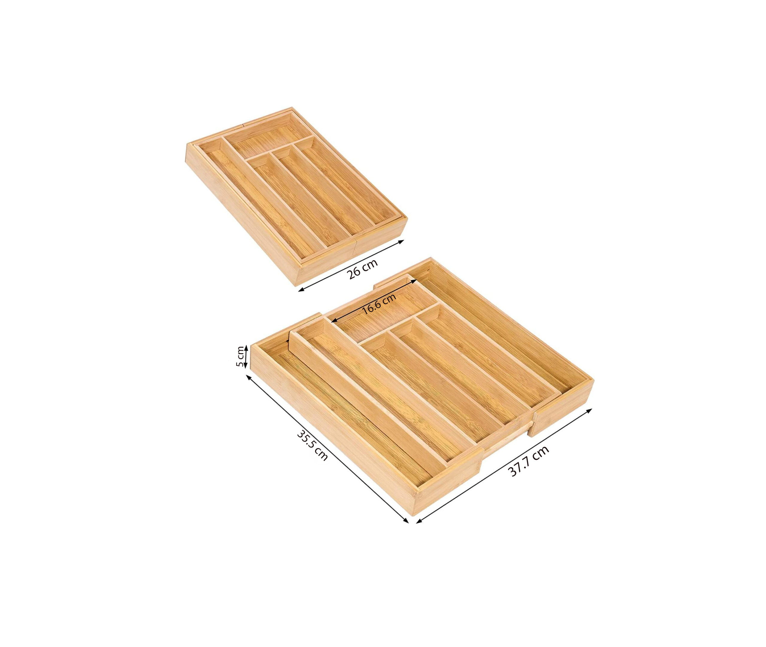 BAMBOO EXPANDABLE DRAWER ORGANIZER – ADJUSTABLE CUTLERY TRAY WITH 7 COMPARTMENTS