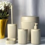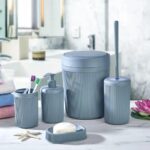 •Includes soap dispenser, toothbrush holder, soap dish, toilet brush holder, and trash can