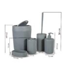 •Size: Soap Dispenser: H 17.5 cm × D 7.5 cm – Toothbrush Holder: H 12 cm × D 8.5 cm – Cleaning Brush: H 36 cm × D 8.5 cm – Soap Dish: W 12.5 cm × H 3 cm – Trash Can: H 23 cm × D 15 cm