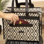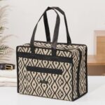 Introduce our Bohe Multi-Purpose Travel Bag, a stylish, lightweight, and compact organizer designed for daily use and travel. Made in a light brown fabric with a black pattern, this travel bag unfolds into multiple compartments, elastic pockets, and secure zipper sections to store all your essentials, from toiletries and skincare to personal items. Its built-in hanger allows you to hook it anywhere, and the back strap lets you attach it easily to your trolley bag. Perfect for maintaining neat, efficient organization during trips or everyday routines. Buy now from Homedash in Lebanon.