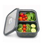 Keep your fruits and vegetables fresh, clean, and perfectly organized. This smart 2L bowl with 2 removable strainer baskets is designed to make washing, draining, and storing food easier than ever. The integrated double strainer system allows water to drain efficiently while keeping your ingredients safely inside. Perfect for rinsing vegetables, storing pickles or olives, or organizing fresh ingredients in the fridge. Its compact and stackable design makes it a practical solution for modern kitchens. Shop now from Homedash in Lebanon and upgrade your kitchen organization with this versatile food storage container.