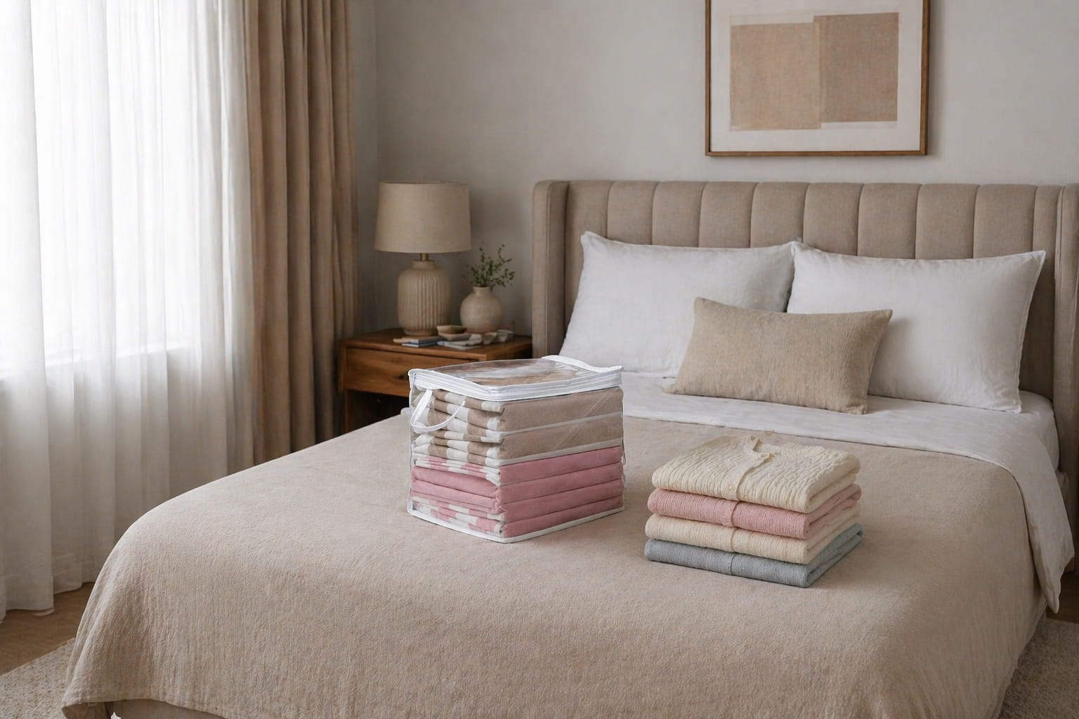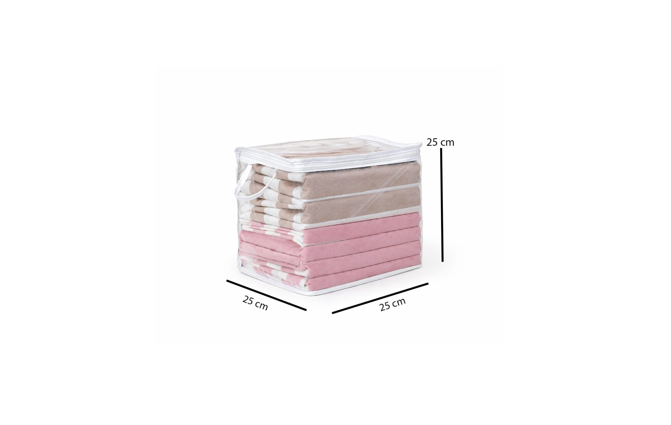 Keep your home organized in style with this practical and transparent storage solution. This 25cm clear storage bag is designed to protect your clothes, towels, and essentials from dust and moisture while allowing quick visibility through its clear PVC window. Perfect for closets, under-bed storage, or travel use, it combines durability with convenience thanks to its strong handles and smooth double zipper system. Whether for daily organization or seasonal storage, this versatile bag is a must-have, shop now from Homedash in Lebanon.
