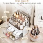 Keep your beauty essentials perfectly organized with the Cosmetics Organizer Set from Homedash. This 2-piece makeup storage set includes a large skincare display case and a 360° rotating brush holder, both designed for style and practicality. With transparent drawers, a clear flip-top cover, and multiple compartments, it allows easy access to your cosmetics while keeping them safe from dust and water. The portable handle and elegant white color make it ideal for your vanity, dressing table, or bathroom counter — combining modern design with maximum storage efficiency.