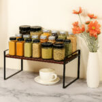 Maximize your space instantly with the Countertop Shelf Organizer, designed to double your storage capacity in kitchens, bathrooms, pantries, bedrooms, offices, and reading rooms. This multifunctional stand is perfect for keeping spice jars, toiletries, skincare, books, mugs, or pantry items neatly arranged and easy to access. Built with a high-quality wooden board and sturdy metal frame, this organizer offers exceptional durability and style. The wood surface is waterproof, and smooth to the touch, while the metal structure is treated with anti-rust paint for long-lasting performance.Metal legs enhance stability and load-bearing strength. Available in two stylish retro combinations white metal with light natural wood, or black metal with dark natural wood this countertop stand blends industrial charm with warm wooden tones.