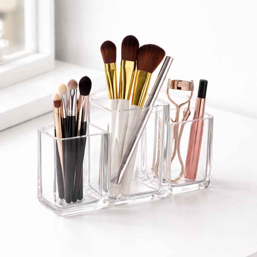 Upgrade your vanity with smart organization and elegant clarity. This 3-compartment transparent organizer is designed to neatly store your makeup brushes, cosmetics, and daily essentials while keeping everything within easy reach. Crafted from high-quality clear acrylic, it adds a modern and clean touch to any bedroom, bathroom, or office setup. The stepped design allows taller tools to stand upright while smaller items stay perfectly arranged. Durable, waterproof, and easy to clean, it’s the perfect solution for clutter-free beauty and workspace. Enjoy a premium organizing experience (shop now from Homedash in lebanon).