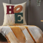 CUSHION COVER HOME VIBES – LETTER EMBROIDERED DECORATIVE PILLOW WITH FILLER