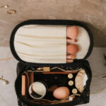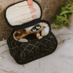 Discover the Elegant Travel Make Up Bag designed for style, functionality, and convenience. Featuring a spacious interior with organized pockets and a dedicated brush compartment, this black-and-gold cosmetic case opens flat for full visibility and easy access. The sturdy handle makes it perfect for travel, business trips, vacations, and everyday use. A premium organizer that keeps all your beauty essentials neatly stored wherever you go.