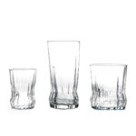 GAIA SET 18 GLASS CUPS –VERTICAL RIPPLE DETAILING – 6 SMALL, 6 MEDIUM, 6 LARGE – MODERN DRINKWARE SET