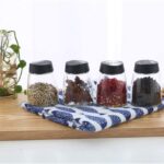 GLASS SPICE JAR WITH DOUBLE LIDS – SEASONING SHAKER, SALT & PEPPER CONTAINER