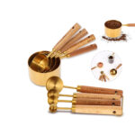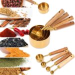 GOLD MEASURING CUPS AND SPOONS SET WITH WOOD HANDLES – 8 PIECES STAINLESS STEEL