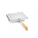 HOT SANDWICH MAKER PRESS ALUMINUM FLIP TOASTER WITH WOOD HANDLE FOR STOVETOP & CAMPING