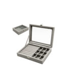 JEWELLERY BOX ORGANISER 9 GRIDS VELVET STORAGE CASE WITH LOCKABLE LID & REMOVABLE TRAY – GREY