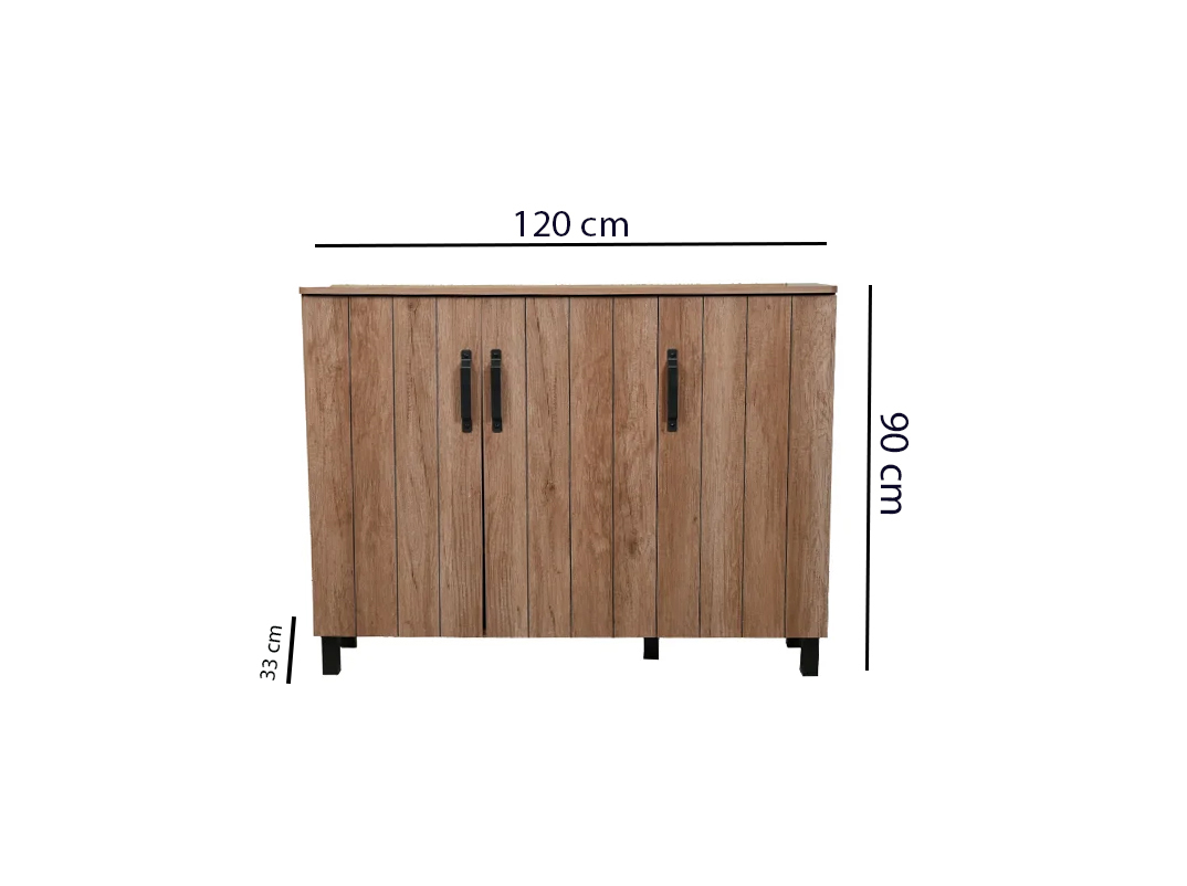 A smart storage solution that blends style with everyday practicality, this wood cabinet with 3 doors and durable plastic legs is designed to elevate your home organization effortlessly. Crafted from natural wood with sleek black handles, its 3-tier and 2 sections interior offers generous space for shoes, bags, and daily essentials while maintaining a clean and modern look. Perfect for entryways, bedrooms, or walk-in closets, it adds a touch of elegance while keeping your space tidy. Shop now from Homedash in Lebanon.