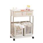LAUNDRY BASKET SLIM 2 TIER WITH REMOVABLE STORAGE BINS AND WHEELS