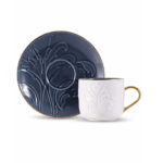 LEAF NAVY SET 6 PCS COFFEE CUPS – DORSCH DH-09320 PORCELAIN COFFEE CUPS WITH SAUCERS
