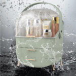 Made from high-impact polystyrene, it is dustproof, moistureproof, rust-resistant, and lightweight. The transparent top lid allows you to easily find your products while keeping them protected. With ample storage for lotions, serums, lipsticks, eye shadows, perfumes, and powders, it saves space and keeps your vanity organized. Portable and stable with nonslip feet, it’s ideal for daily use in your bedroom or bathroom.