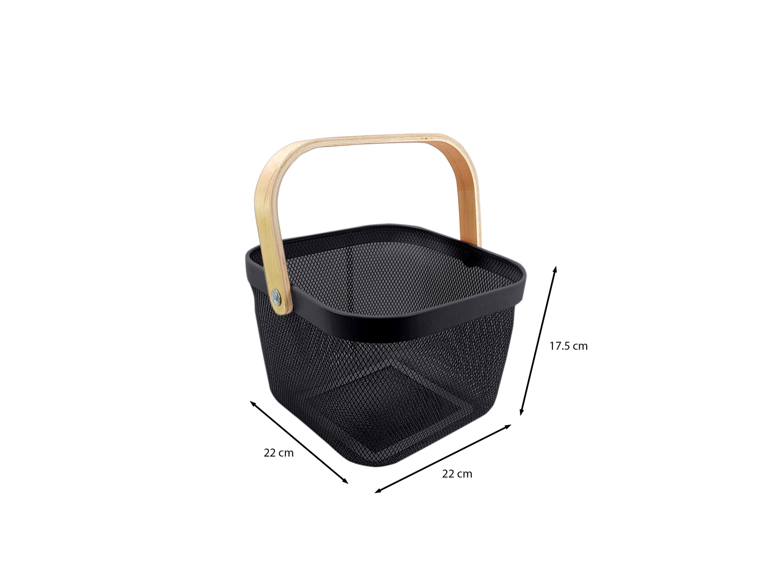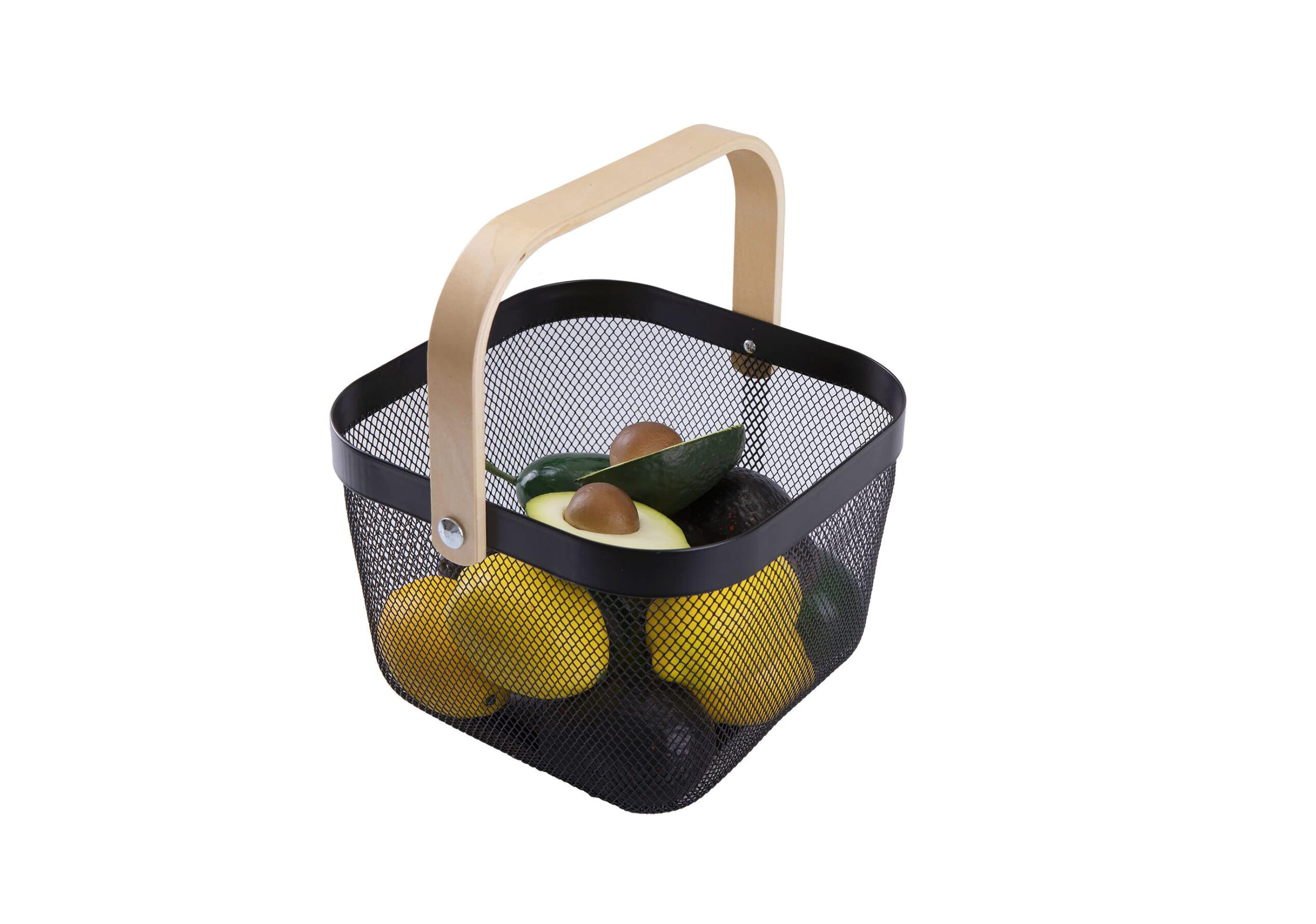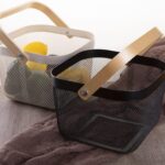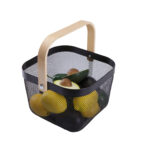 METAL WIRE WOVEN FRUIT STORAGE BOWL BASKET WITH WOODEN HANDLE
