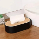 OVAL TISSUE BOX WITH BAMBOO COVER, PLASTIC TISSUE ORGANIZER, BATHROOM TISSUE DISPENSER FOR HOME, BEDROOM, OFFICE, LIVING ROOM