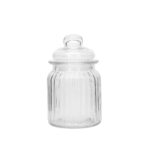 RIBBED 12.5 CM GLASS SWEET JARS WITH LID – VINTAGE CANDY & FOOD STORAGE JAR