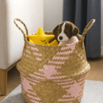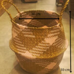 SEAGRASS BASKET WITH HANDLES – NATURAL BROWN & PINK STORAGE BASKET 35*20 CM