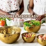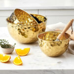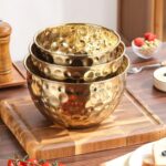 SET 3 PIECES GOLD HAMMERED MIXING BOWLS SET – STAINLESS STEEL DECORATIVE SERVING BOWLS