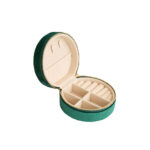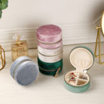 Keep your favorite accessories safe and organized wherever you go with this Velvet Mini Travel Jewelry Box. Designed with a double-layer interior and soft velvet lining, this elegant circular jewelry case is perfect for storing rings, earrings, necklaces, and bracelets. Compact yet spacious, it measures 10 cm in diameter and 4.5 cm in height, fitting easily in handbags or suitcases. Available in green, pink, and white, it combines style, softness, and durability protecting your jewelry from dust, scratches, and tangling. Ideal for travel, daily use, or as a thoughtful gift for women and girls.