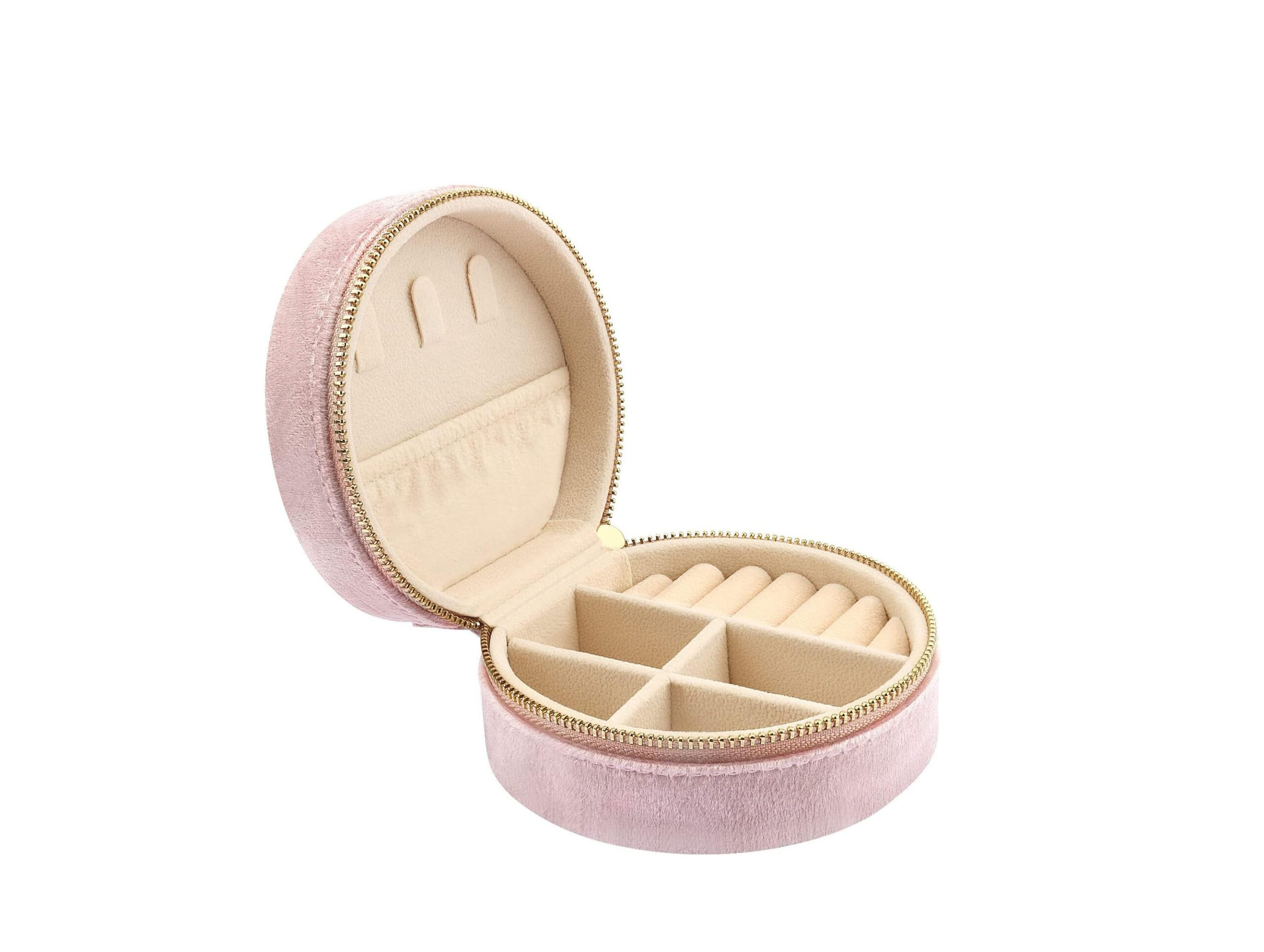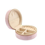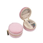 TRAVEL JEWELRY BOX – VELVET MINI JEWELRY ORGANIZER CASE FOR WOMEN & GIRLS, SMALL ROUND JEWELRY STORAGE BOX